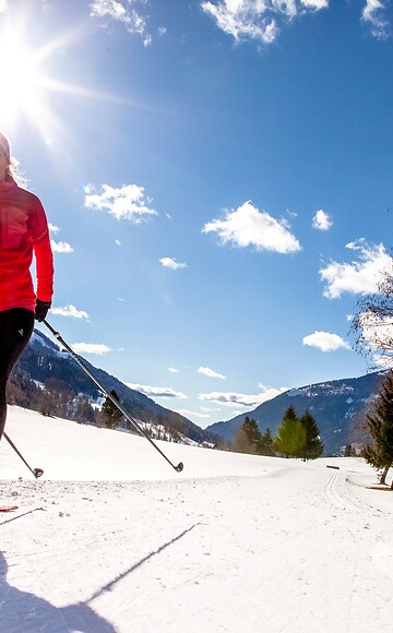 During our introductory sessions for beginners on the Römerloipe, you will gain your first cross-country skiing experience in a relaxed atmosphere and under professional guidance. Certified winter sports guides provide thorough instruction and technique training to ensure a safe and enjoyable introduction.